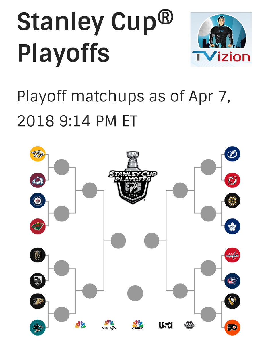 2018 NHL Playoff Schedule set. First round starts Wed April 11th. Cheer your team by watching on Tvizion's $49.95/month live streaming service.