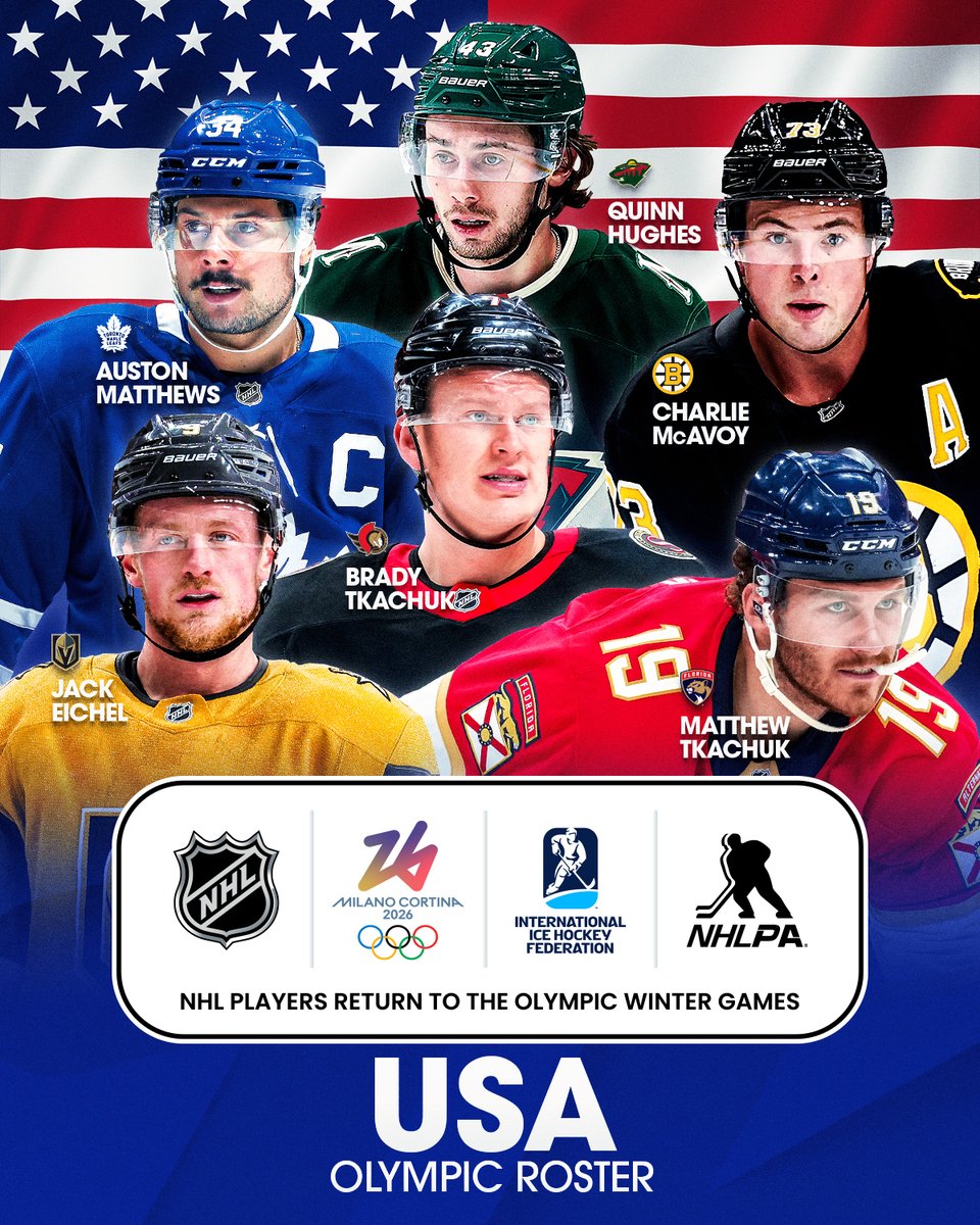 Yhdysvallat on julkistanut maajoukkueensa helmikuussa käynnistyviin Milanon olympialaisiin.