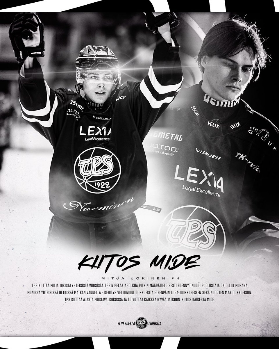 TPS:n junioripolun läpikäynyt Mitja Jokinen, 20, jättää turkulaisseuran. TPS hyvästeli puolustajalupauksen tiistaina sosiaalisen median kanavissaan.